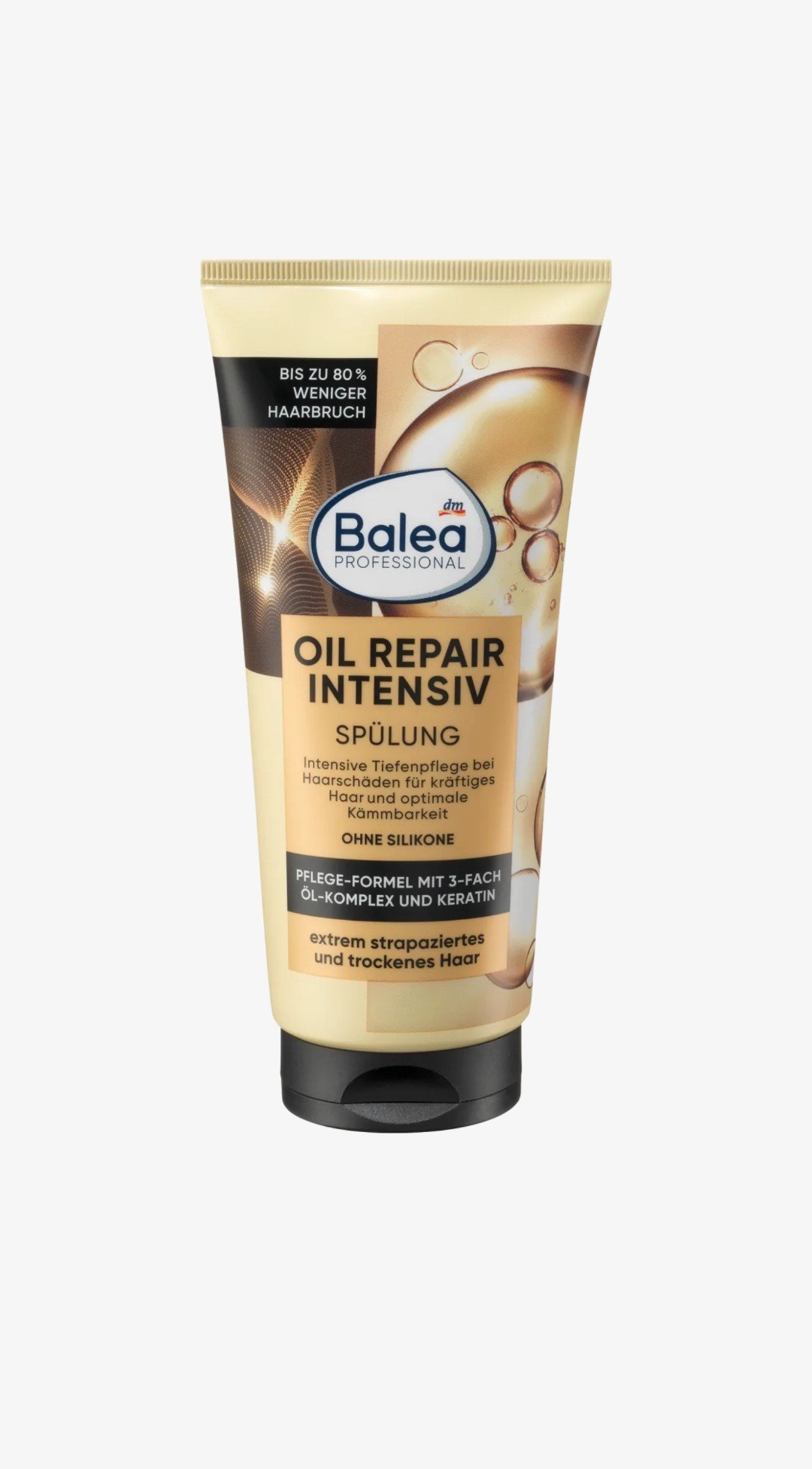 بلسم Oil Repair Intensiv من Balea Professional مصمم خصيصًا للشعر الجاف والتالف. تركيبة غنية بالزيوت تغذي الشعر بعمق وتمنحه النعومة واللمعان الطبيعي.